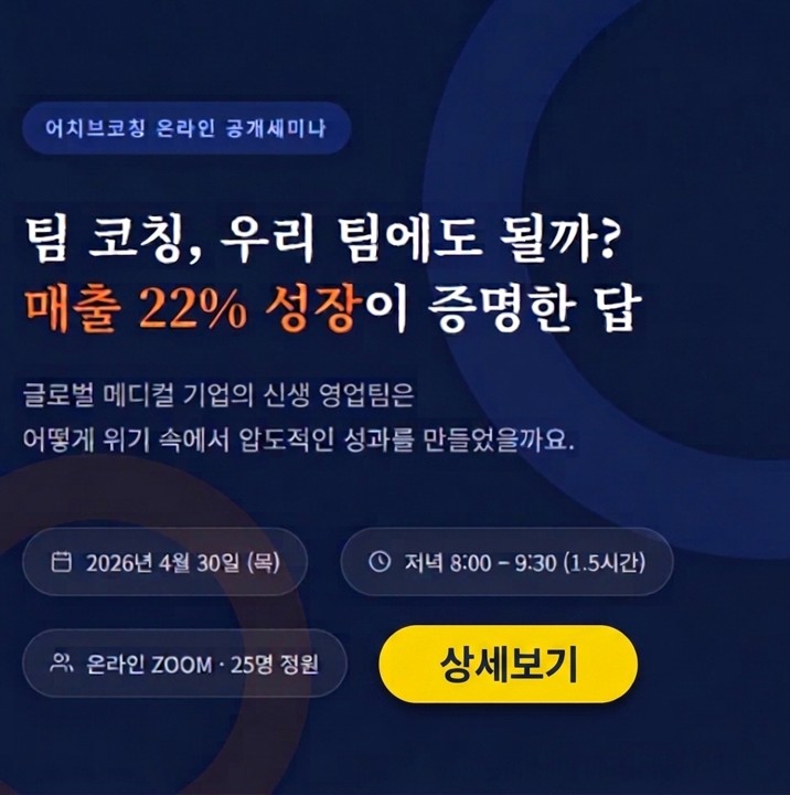조직의 영업역량 향상, 리더십 강화가 필요하다면 어치브코칭과 상의하세요.