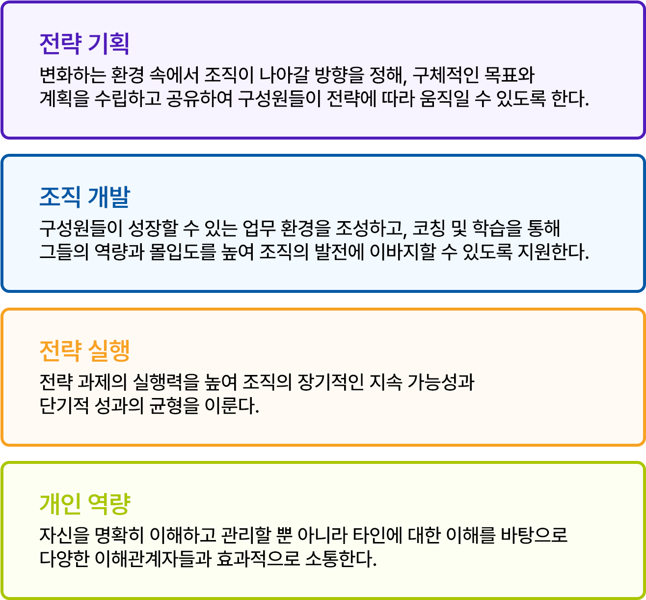 전략을 기획하고, 실행으로 완성할 수 있는 조직을 효과적으로 이끄는 리더십