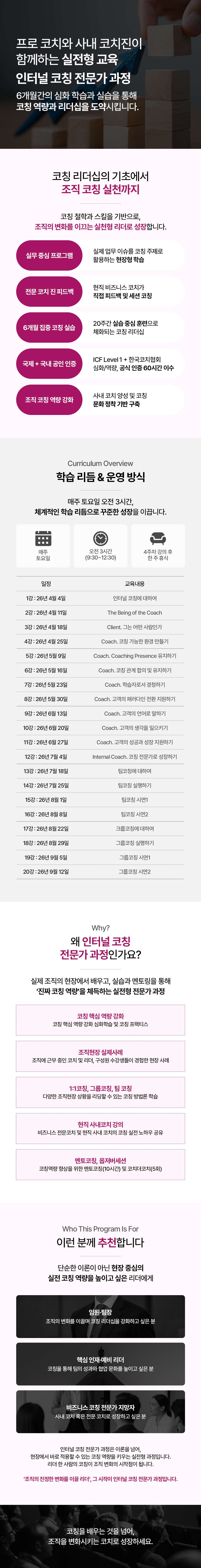 • 6개월 심화 학습과 실습으로 코칭 역량과 코칭 리더십의 퀀텀 점프